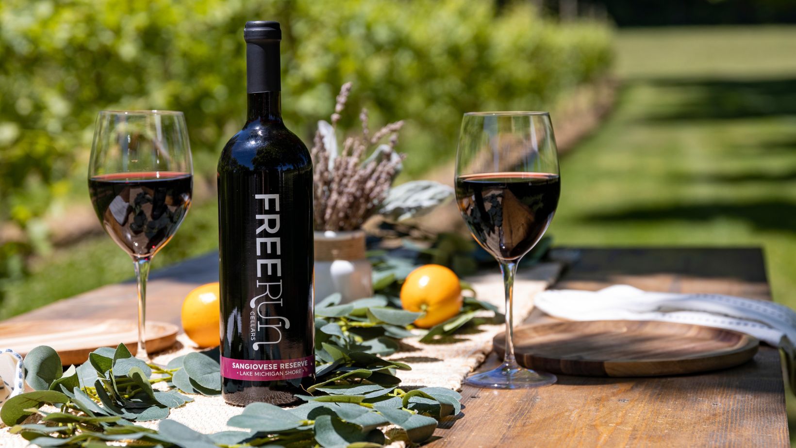 Our winemaker is proud to introduce Free Run Cellars’ limited release 2020 Sangiovese Reserve - the first from the Lake Michigan Shore American Viticultural Area (AVA). Aged for 16 months in French Oak barrels, this dry, medium-bodied red wine is rich with flavors such as cherry, espresso, and hints of balsamic. Because of the high acidity in this wine, it’s versatile with various vegetable and spice-driven foods, such as marinara-based pasta dishes, red pepper, grilled steak, and wood-fired pizza.