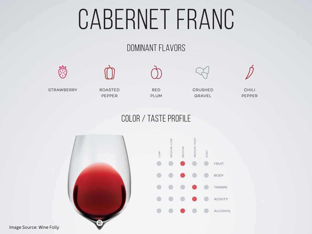 Similar to the wildly popular Cabernet Sauvignon, the Cab Franc has medium-high acidity, and medium-high tannins, but is slightly lighter in body and has more red fruit flavors compared to Cab Sauv’s black fruits. But what really sets Cab Franc apart is Pyrazines, which is responsible for its distinct Bell Pepper aroma. Give your glass a swirl. Do you smell it?
